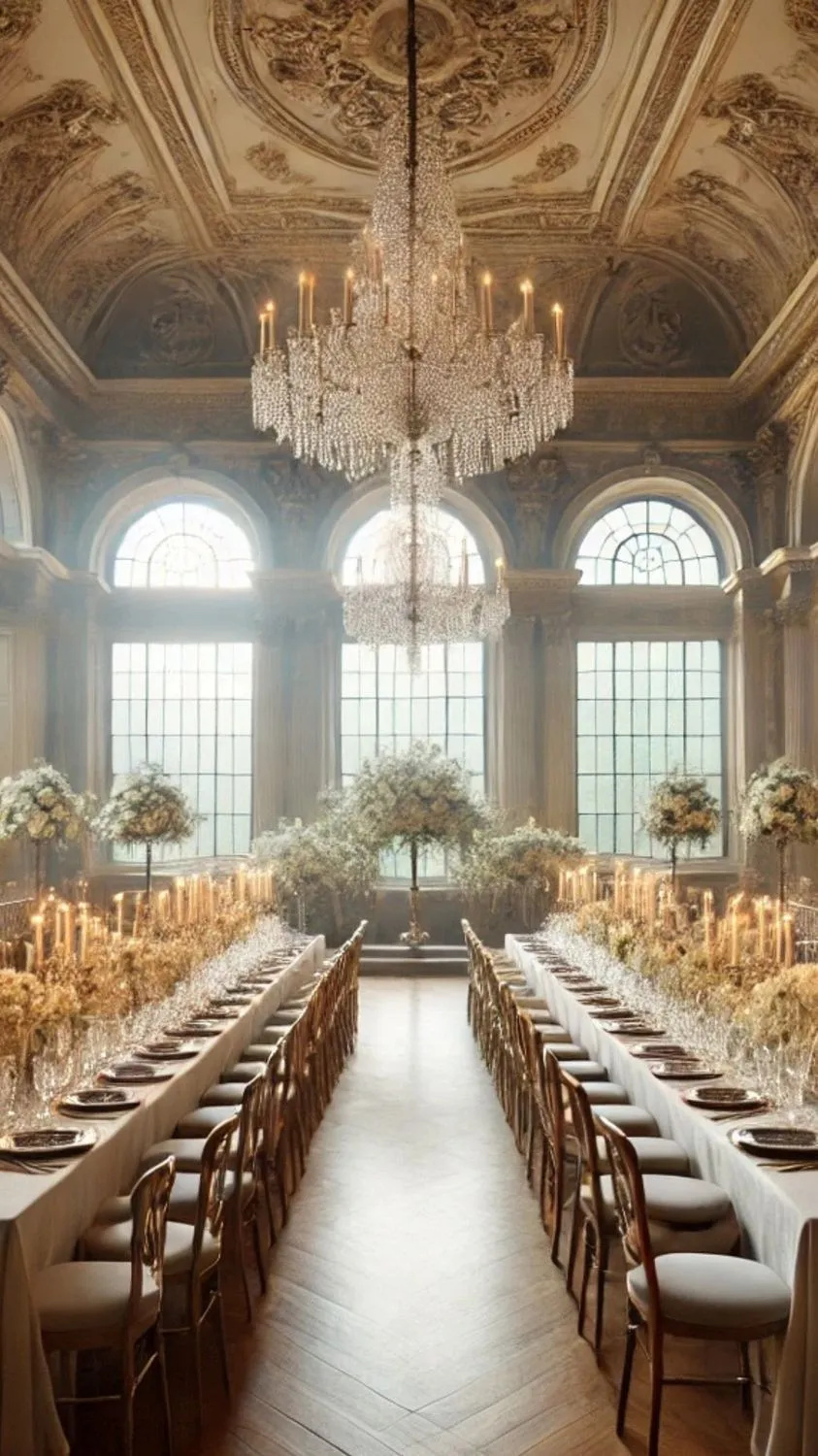 The right venue is the foundation of this vibe. You're looking for historic estates, grand manors, country clubs, European inspired gardens, grand ballrooms, large chandeliers, classic architecture. For more budget friendly options look for a hotel in an old historic building, or a space in an old university building or church.